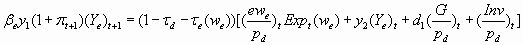 где, Уравнение (30) позволяет исследовать основные каналы влияния бюджетно-налоговой политики на экономический рост в экспортно-ориентированном секторе, и следовательно, с учетом зависимости (17), и на общую экономическую динамику. В частности, три слагаемых в правой части (30) описывают основные каналы влияния бюджетно-налоговой политики на агрегированный выпуск:
