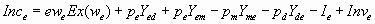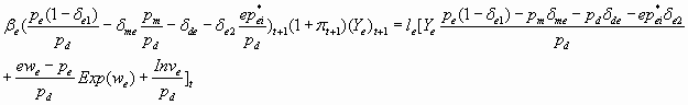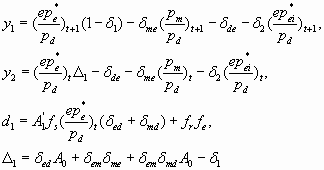 Затем выписываются уравнения для производственной функции и заработной платы в секторе ЕМ:
