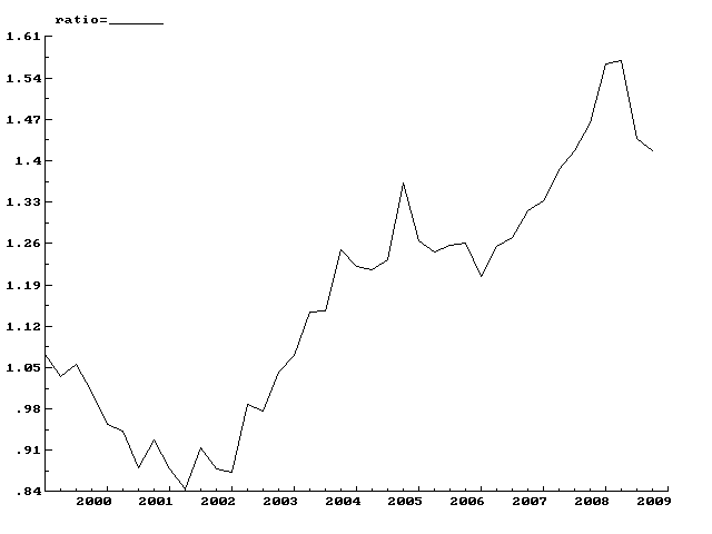 Рис.3. Отношение номинального обменного курса евро к курсу доллара