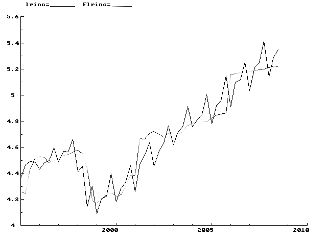log(rinc) = 1.2443 + 0.679 log(rer) + 0.271 s2001p2 + 0.272 s2006p1