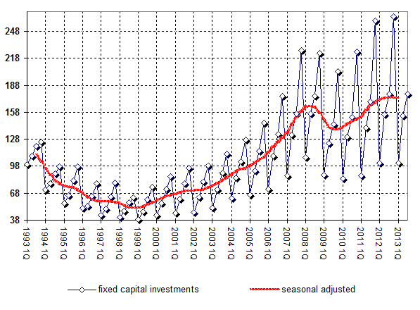 Fixed Capital Investments Dynamics (% of Quarter 1, 1993 = 100%)