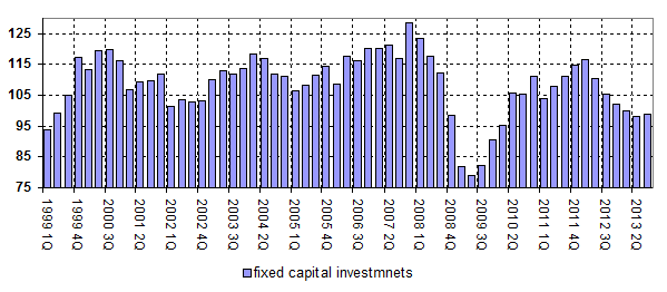 Investments Estimates of fixed capital investments dynamics show approximately 98.8% of corresponding period of previous year for 3-rd Quarter of 2013. Historically, it is 105.3% of corresponding period of 2012.