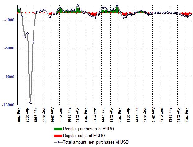 Bank of Russia publishes information about Its operations on foreign exchange market since August, 2008.
