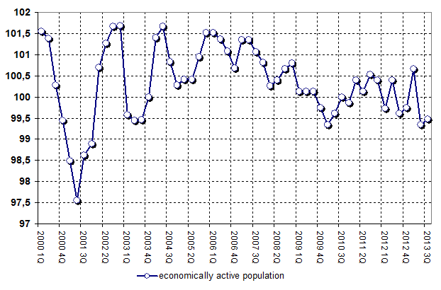 Economically Active Population Total Number Dynamics (% of corresponding period of previous year)