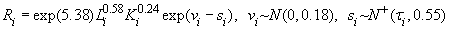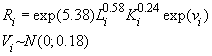 Тогда двухфакторная модель 2.2 производственного потенциала с необъясненной неэффективностью имеет вид
