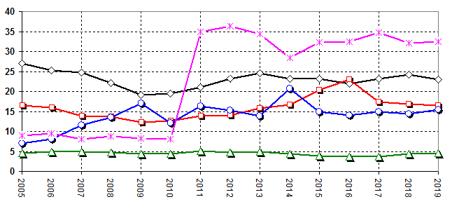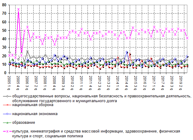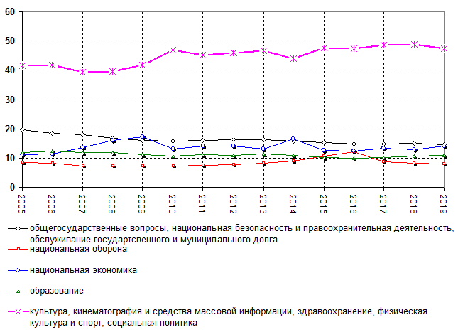 Рис.6 Динамика удельного веса в общем объеме расходов бюджетов (% ) (федерального бюджета)
