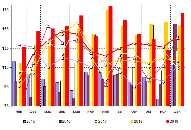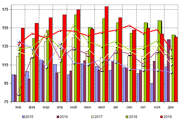 Рис.2 Динамика доходов и расходов консолидированного бюджета в сравнении с уровнем 2013 года (в % к соответствующему периоду 2013 года, в номинальном выражении )