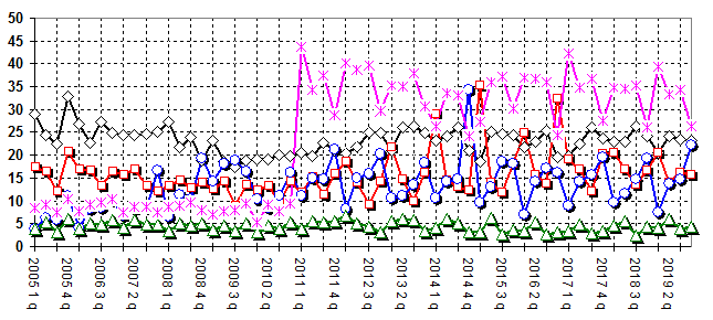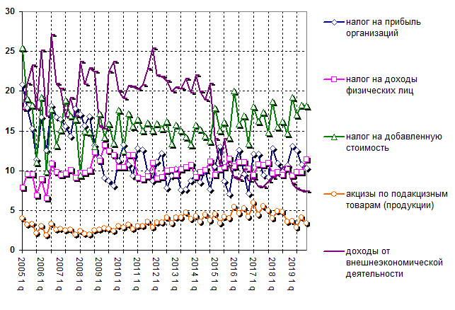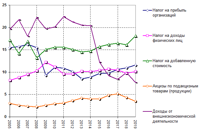 Рис.5 Динамика удельного веса в общем объеме доходов консолидированного бюджета (% )