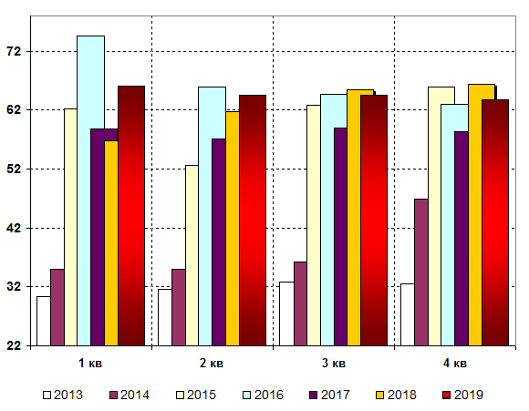 Рис.2 Динамика среднего номинального курса ЕВРО (руб. за 1 ЕВРО)