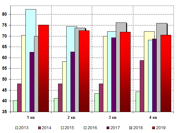 Средний номинальный курс ЕВРО составил 72,5 руб. за 1 ЕВРО в 2019 году (73,9 руб. за 1 ЕВРО в 2018 году за аналогичный период).