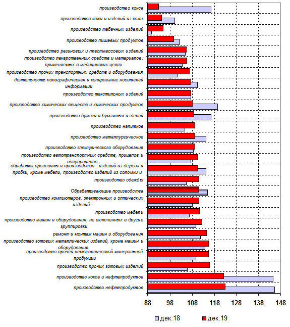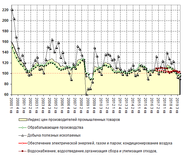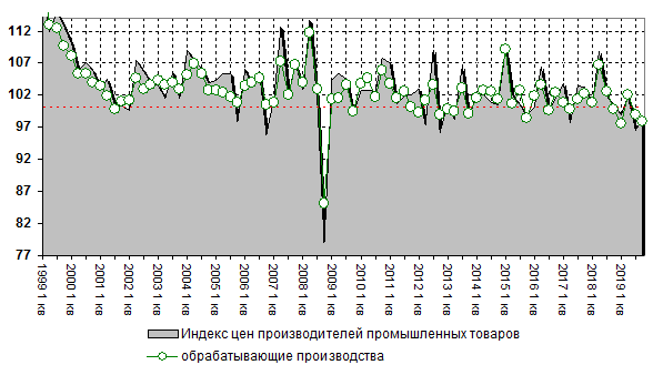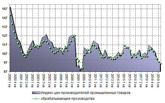 Динамика цен производителей Индекс цен производителей промышленной продукции составил 95,7% по итогам 2019 года в сравнении с предыдущим периодом (декабрь 2019 года к декабрю 2018 года). Для справки, в 2018 году значение индекса составляло 111,7%.