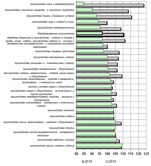 Индекс цен производителей в категории обрабатывающие производства составил 96,6% по итогам 2019 года в сравнении с предыдущим периодом. Для сравнения, в 2018 году показатель составлял 110,3%.