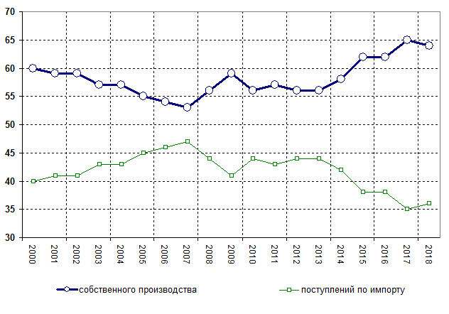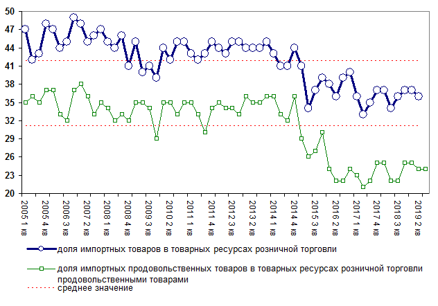 Рис.4 Доля импорта в структуре розничной торговли (% )