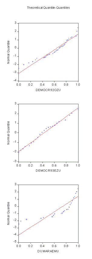 Приложение 2. Сравнение распределений индексов демократичности с нормальным.