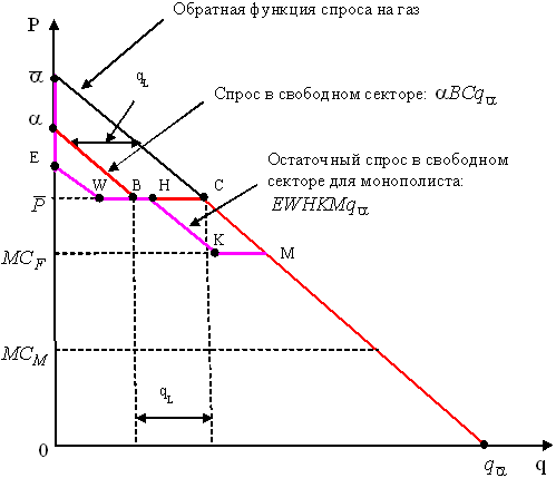 Рисунок 12. Функции спроса в случае, когда в свободном секторе, кроме ОАО «Газпром» действуют независимые производители.